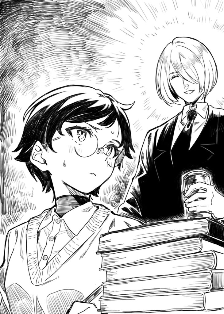 Enfin, je vais pouvoir étudier en paix. Malheureusement, je n’avais toujours pas trouvé de documents sur Veight Gerun Friedensrichter. Étrange. Il a été noble et membre du Conseil de la République. On pourrait penser que quelqu’un qui a semé un tel tumulte à Rolmund aurait fait l’objet de davantage d’écrits, au moins dans son pays d’origine. Si je ne trouvais rien sur lui dans l’immense bibliothèque de l’Université de Meraldia, il ne me restait plus qu’à consulter les archives publiques de l’Armée démoniaque. Le problème, c’est que j’avais déjà interrogé l’employé des archives de l’Armée démoniaque, et il m’avait répondu qu’aucune trace de Veight Gerun Friedensrichter n’était disponible. Quelle situation… !