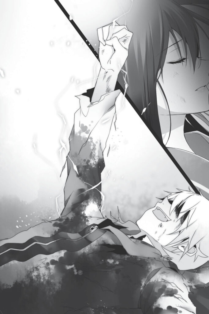 Mais avant cela, Kojou fit un bond, un exploit rendu possible par l’utilisation maximale de sa puissance vampirique. Ni Yukina, pourtant consciente de sa fatigue, ni Meiga, en alerte et sur ses gardes, ne purent répondre à sa vitesse.
