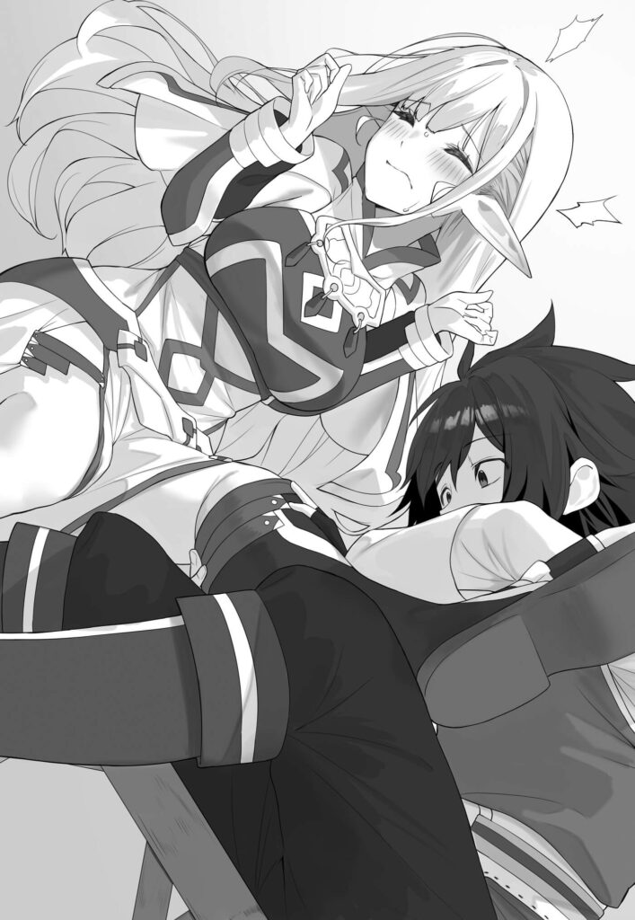 Alors que Marie avait toujours été un peu vantarde, Eve avait tendance à dire ce qu’elle pensait et à convoiter rapidement ce que les autres possédaient. Sa réaction ne fit qu’alimenter le sourire satisfait de l’elfe dont les joues rougissaient de plus en plus. Le problème, c’est que je ne pouvais m’empêcher de la trouver adorable quand elle se comportait ainsi. Elle était mignonne d’habitude, mais cette expression avide sur son visage me faisait ressentir quelque chose de différent. C’était peut-être juste moi, mais il y avait quelque chose de très humain dans son attitude, même si c’était une elfe. En voyant cette expression, j’avais l’impression d’avoir remporté une victoire. Je ne savais pas pourquoi.