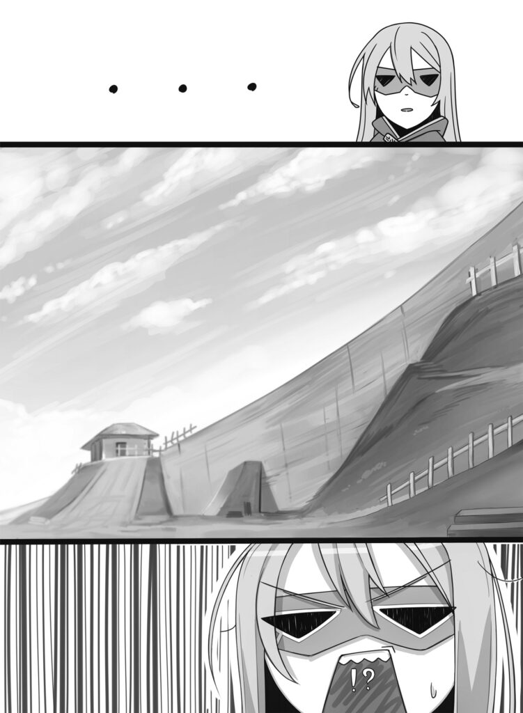 « Qu’est-ce que c’est que ce… !? » Même Hveðrungr, qui connaissait bien les constructions insensées de Yuuto, resta bouche bée pendant deux bonnes minutes avant de s’exclamer : Yuuto avait construit un mur fortifié de six kilomètres de long, s’élevant à dix mètres au-dessus du sol et faisant cinq mètres d’épaisseur. Cela avait complètement bloqué la route de Gjallarbrú.